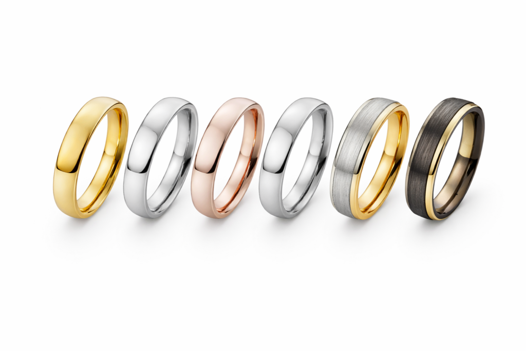 Wir bieten Trauringe in unterschiedlichen Materialien und Kombinationen: